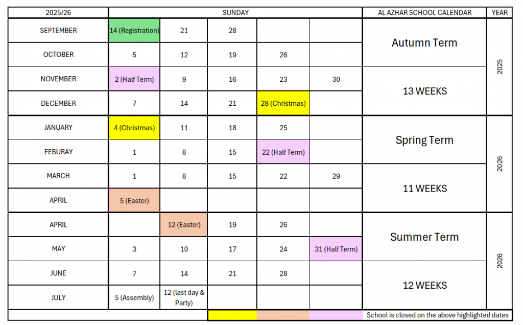 Welcome to Alazhar School’s Calendar page. Stay informed about our upcoming events, classes, and important dates. We strive to provide a rich educational experience, and our calendar is designed to keep you updated on everything happening at our school.